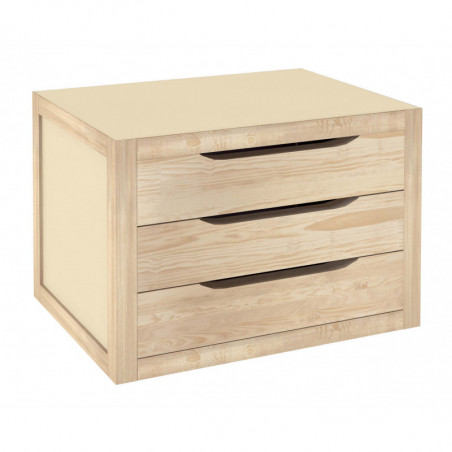 in legno. 3 cassetti. Dimensioni cm 39x30x29,5h