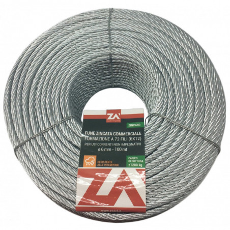 in filo di acciaio zincato, anima tessile. Rotolo da 100 m Diametro 2 mm N.fili 42