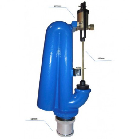 Batteria di scarico Hidrodiba per cassetta alta. composta da un sifone in ghisa plastificato e parti esterne in ottone cromato. Silenziosa e durevole nel tempo, è in grado di garantire un’ottima resa. Inserita nella cassetta alta ed esterna al muro