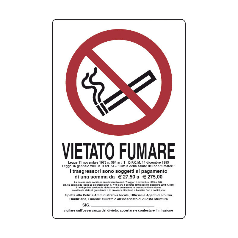 TARGA SEGNAL.VIETATO FUMARE L.311/1 300X200