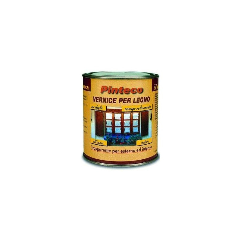 PINTECO - Vernice di finitura trasparente per esterno lucida o satinata/effetto cera - INODORE Vernice di finitura trasparente lucida o satinata, indicata per il trattamento di tutti i manufatti di legno che richiedono un’ottima protezione superficiale sia all’esterno che all’interno della casa. Prodotto all’acqua indicato per la finitura e/o il ripristino di tutti i tipi di legno gia’ trattati con impregnante sia all’acqua che a solvente; e’ un prodotto di buona elasticita’, resistente agli urti ed ai graffi. Pinteco e’ una vernice indicata per la finitura di serramenti, balconi, perlinature e manufatti di legno in genere destinati sia all’esterno che all’interno della casa. E’ una vernice trasparente che aderisce perfettamente e protegge il legno dagli agenti atmosferici. Pinteco non sfoglia ma si consuma con il passare degli anni, non ingiallisce, rende la superficie piena e morbida al tatto. E’ una vernice inodore all’acqua ed è quindi utilizzabile anche all’interno senza particolari precauzioni. Pinteco fa risaltare e mantiene nel tempo la naturale bellezza del legno. CARATTERISTICHE: - Diluizione: a pennello il prodotto è pronto per l’uso - a spruzzo diluire al 5% con acqua. - Resa media, teorica-indicativa: 8/10 mq. con ml.750 = 11 - 13 mq. con 1 lt. - Applicare il prodotto a temperatura superiore a 15°C. - Residuo secco: 33% lucida - 33% satinata. - Tipo di legante: resine acriliche-poliuretaniche. - Tipo di solventi: acqua. - Peso specifico: 1,030. - Essicazione: superficiale 1 ora - completa 24 ore.