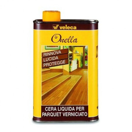 ONELLA - Cera liquida per parquet verniciato È una miscela di cere e resine in emulsione acquosa indicata per il trattamento di manutenzione periodica del parquet verniciato. Ravviva il colore originale ed elimina i difetti superficiali delle parti usurate e/o graffiate. Onella è una cera autolucidante facile e rapida da applicare. Lascia sulla superficie una sottile pellicola trasparente dall’aspetto satinato, antiscivolo, resistente al calpestio, lavabile con acqua e che protegge il parquet evitando l’usura della vernice. Applicata regolarmente, Onella fa risaltare la naturale bellezza del legno e mantiene come nuove le parti trattate. Non si consiglia l’uso di questa cera su parquet di legno grezzo/non verniciato. CARATTERISTICHE: • Il prodotto è pronto per l’uso (eventuale diluizione con acqua) • Residuo secco: 16%. • Composizione: cere e resine acriliche disciolte in acqua • Tipo di solventi: acqua • Peso specifico: 1,00