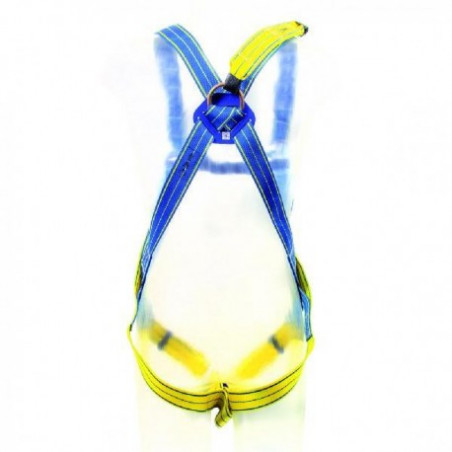 Imbracatura a 2 colori con 1 punto di ancoraggio dorsale e fascia di estensione + 1 punto di ancoraggio sternale + kit cordino. Regolabile sulle cosce. Cinturino pettorale. Cintura pelvica. CINTURA - Materiale: poliestere - Ampiezza: 44± 1mm - Forza di rottura: 22kN o 2.244 kg (min) CUCITURE - Materiale: poliestere ad alta resistenza - Colore: bianco COMPONENTI METALLICHE - Materiale: acciaio - Argentato: nichel cromo - Cucitura: levigata RESISTENZA - Forza statica: 15 kN o 1.53 Kgt in tre minuti per ogni elemento di ancoraggio. PESO - 750 gr CODICE - 0840074 NORMA - EN 361